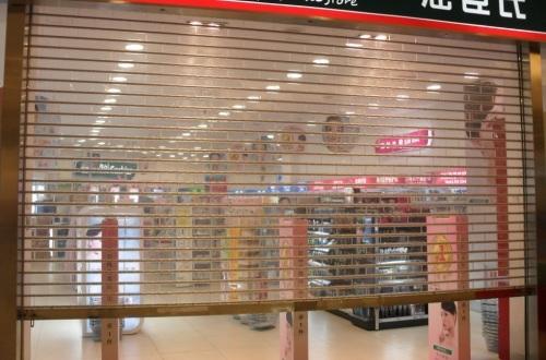 成都水晶卷帘门是卷帘门的一种,整体透光美观,被广泛应用于商场、机场..商铺和店面使用。高透明PC板帘片中间穿插不锈钢管材,或采用铝合金条穿PC板,深受广大消费者喜欢。